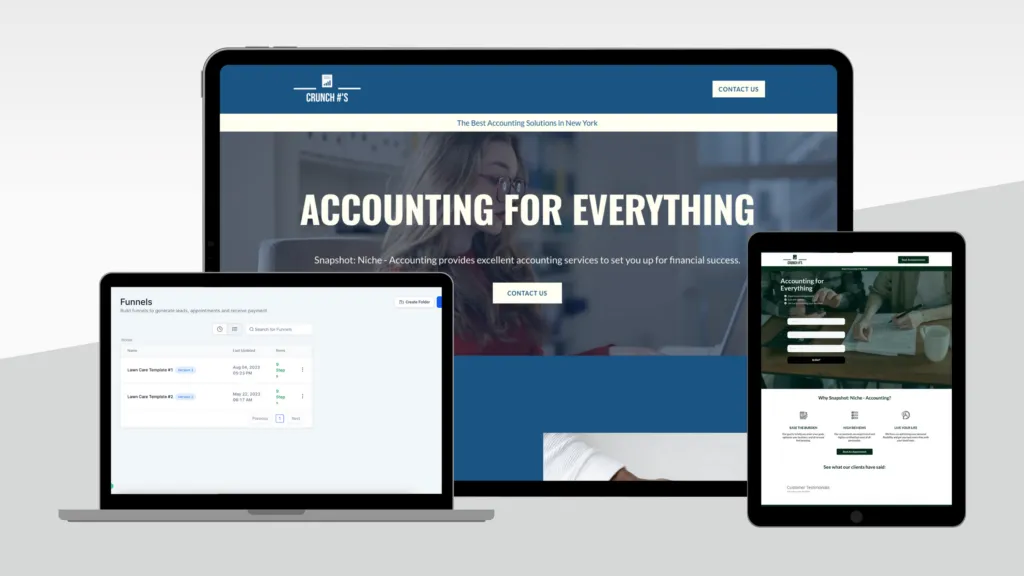 In the process of delivering sticky value, one of the core components is to get a client to use their domain with a site or funnel. This snapshot includes 2 conversion rate optimized funnels that could be used as a simple website or as channel-specific landing pages (think Facebook business page website link so you can see where leads are coming from)