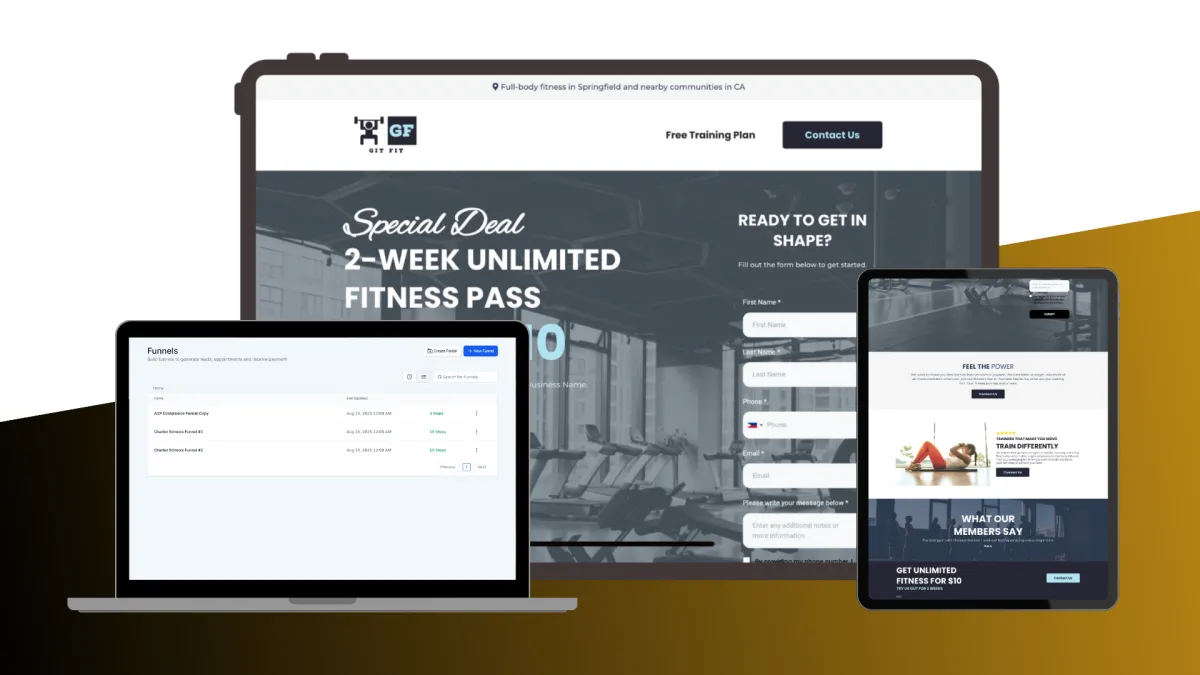 In the process of delivering sticky value, one of the core components is to get a client to use their domain with a site or funnel. This snapshot includes 2 conversion rate optimized funnels that could be used as a simple website or as channel-specific landing pages (think Facebook business page website link so you can see where leads are coming from).