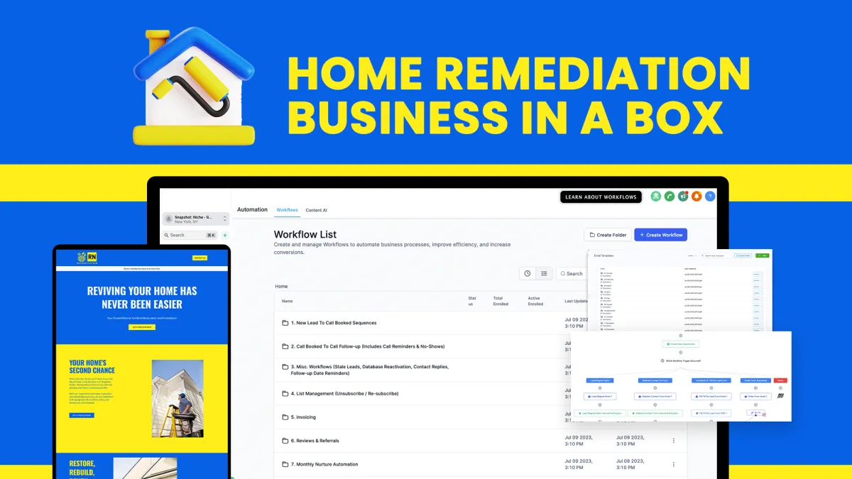 When it comes to workflows, this business-in-a-box leaves no marketing stone unturned. You’ll have everything you could need to capture new leads, persistently deliver value, guide them toward a sale, and then ascend them to become a 5-star review and avid referrer. Workflows include: