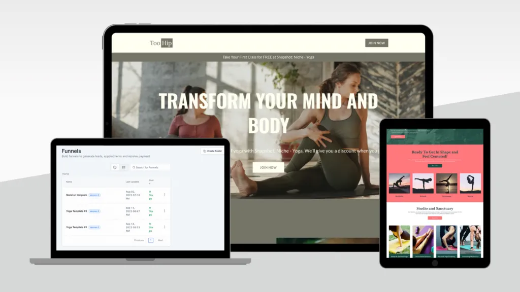 The Epic Yoga Studio Snapshot is designed to predictably capture strangers, nurture prospects, and convert customers into promoters. With this comprehensive snapshot, you can deliver a solution for Yoga Studios that surprises and delights.