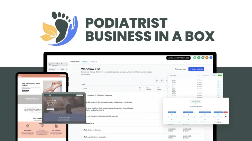 Launch your own Podiatry business with this business-in-a-box epic snapshot.