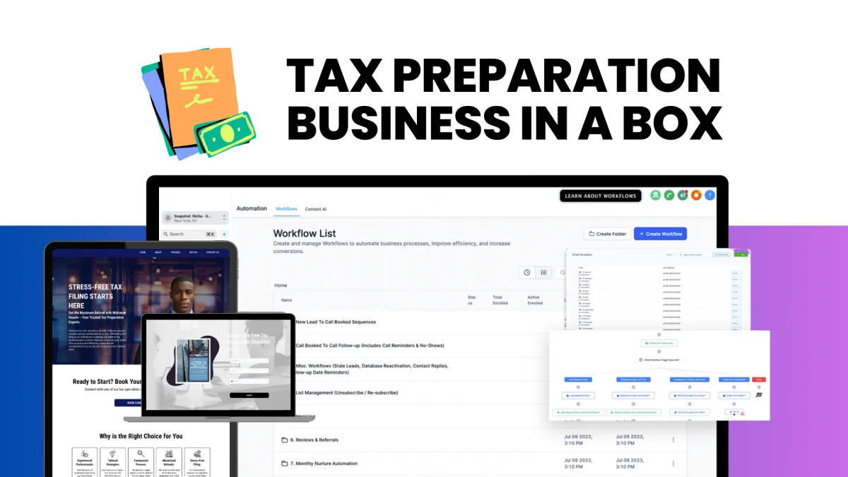Launch your own Tax Preparation business with this business-in-a-box epic snapshot.