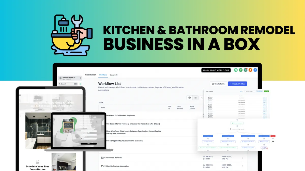 Launch your own Kitchen & Bathroom Remodeling business with this business-in-a-box epic snapshot.