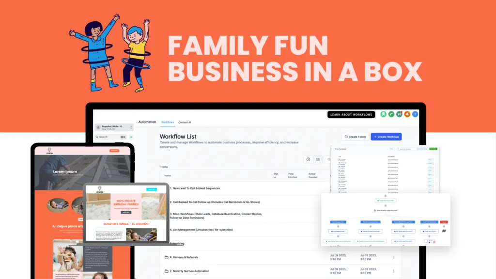 Launch your own Family Fun business with this business-in-a-box epic snapshot.